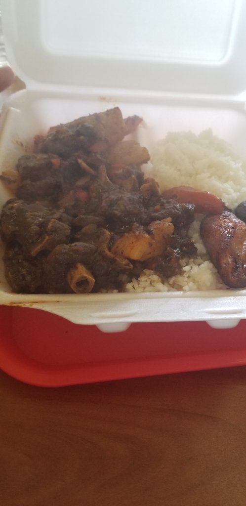 We hit up a lil hole in the wall, a Caribbean spot in Spring Lake. I’ve seen it DoorDash, but never had it so we decided to give it a try. I had oxtails and the Mrs had stew chicken and beef patty. My food was okay, but oxtails come with too many bones for my liking. The Mrs. liked her food, so all was good. (You see the steam from the food?)